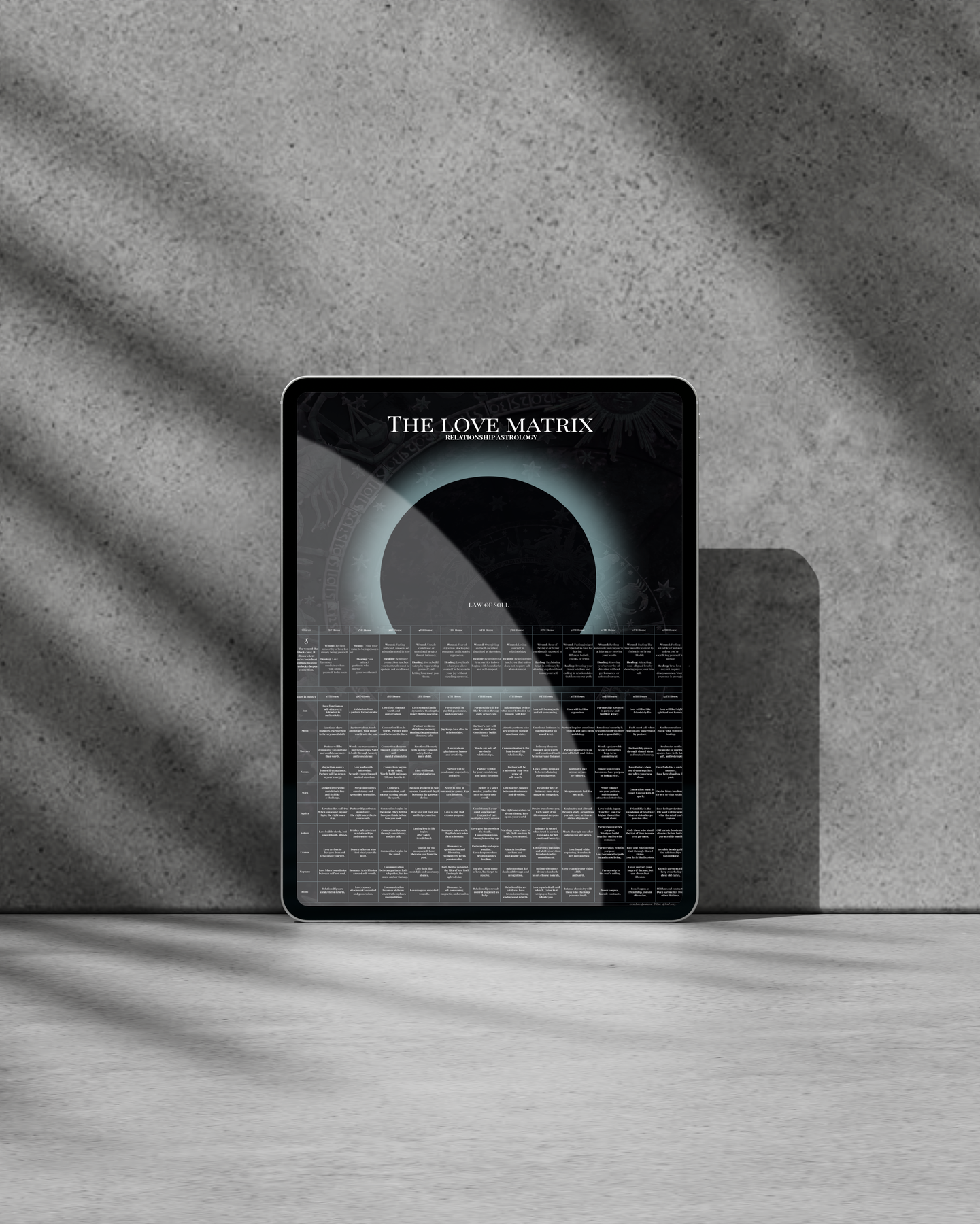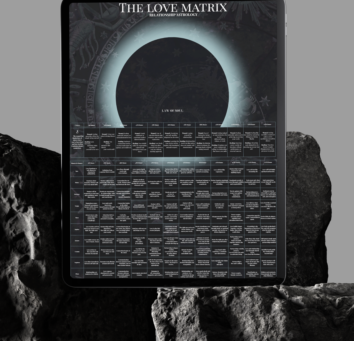 The Love Matrix reads the planets through the lens of love, attraction, intimacy, and soul memory across all twelve houses.
