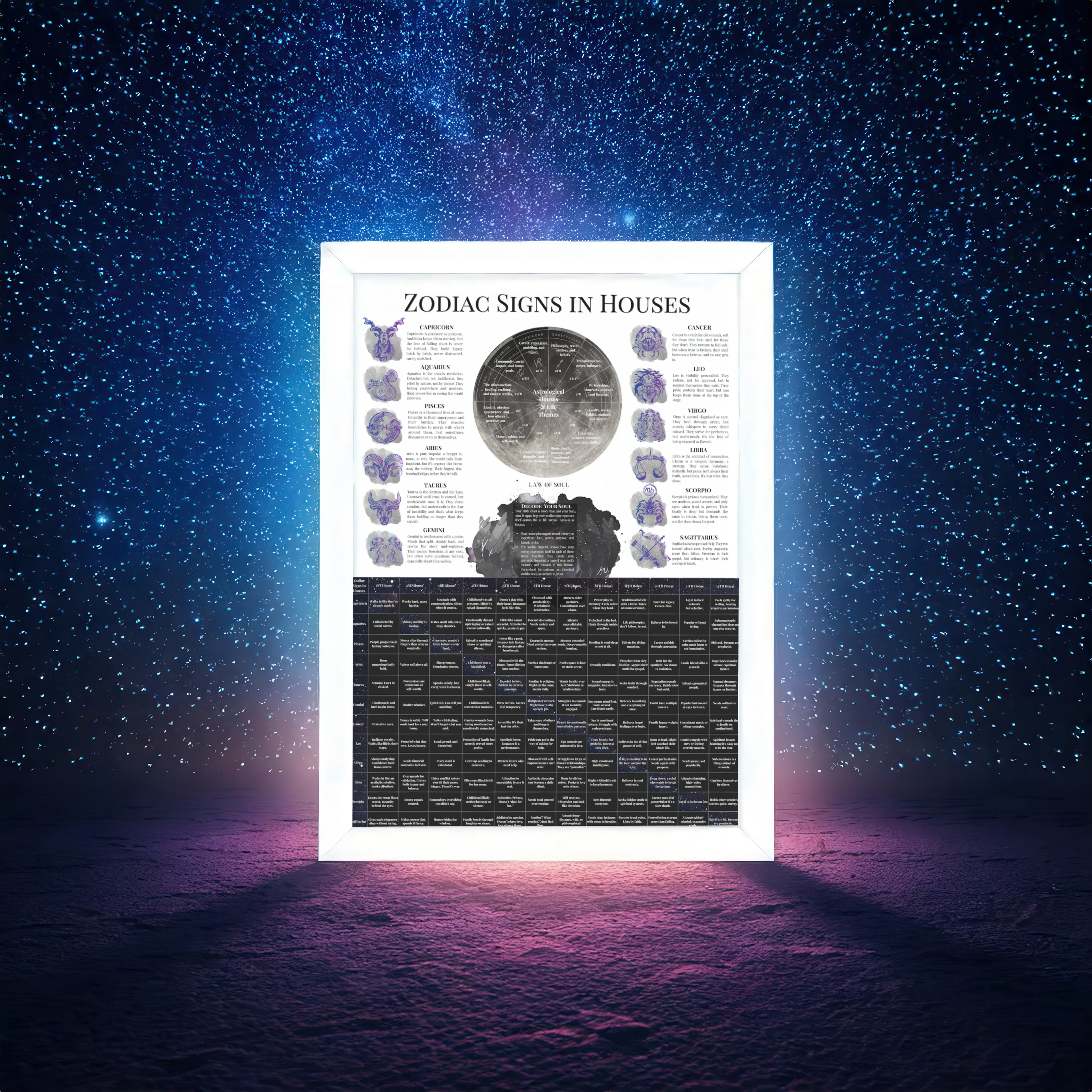 Every order includes a simple step-by-step guide showing you exactly how to match your birth details to your Zodiac Signs in Houses chart, no astrology experience required.